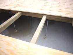 今回キットの中に入って来る注入材はテラス床板のみ。地元の注入材で床下の骨格が組まれ、捨て張り合板で舞台が出来ています(左)。